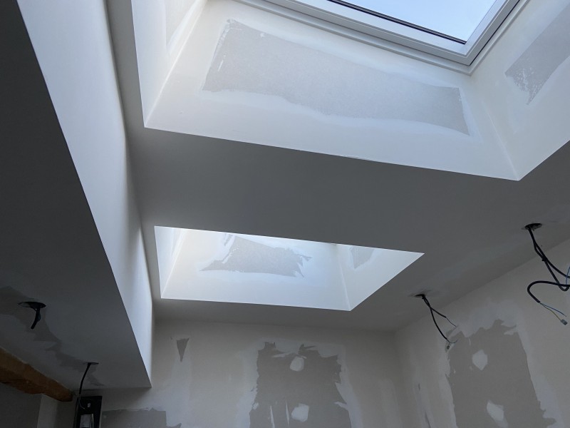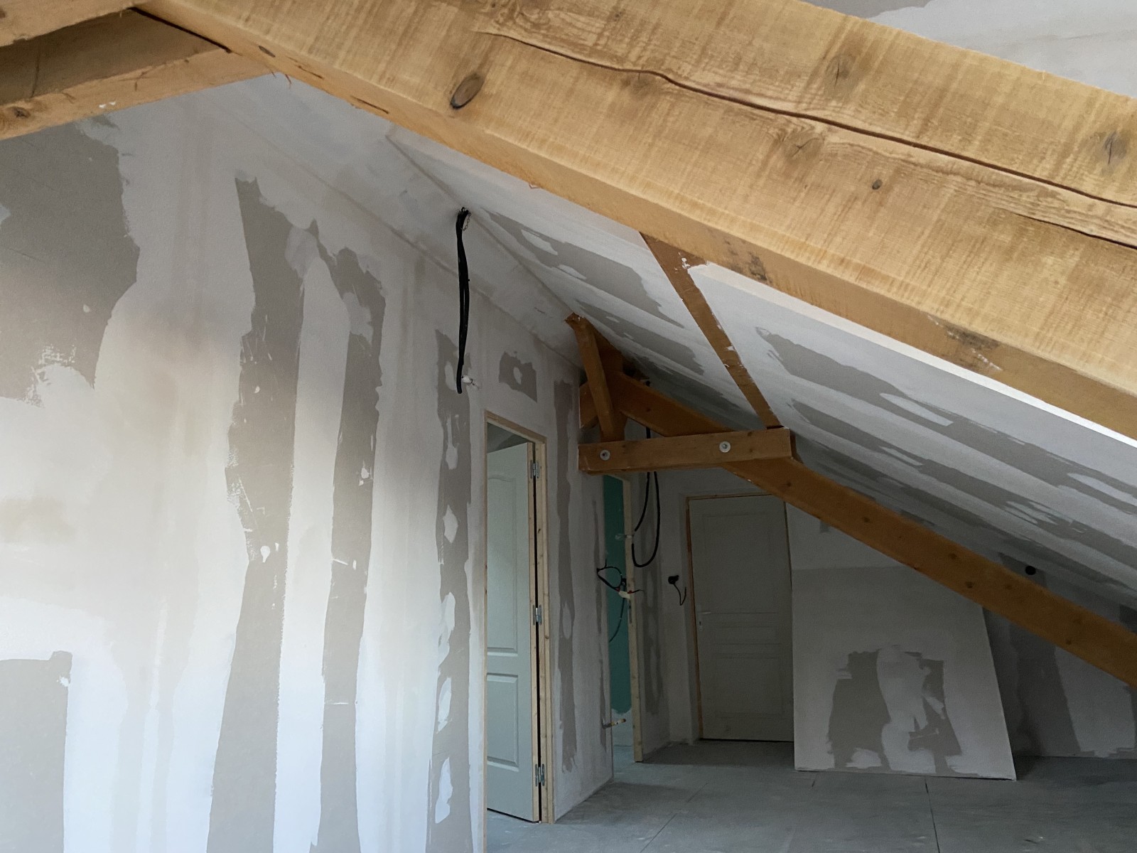 Nos équipes ont réalisé les travaux de plâtrerie et isolation dans les combles de cette ancienne maison Hultehouse.