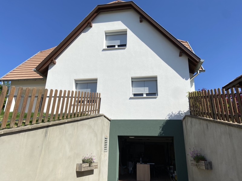 La société Erik à Saverne se spécialise dans l'isolation extérieure. Notre entreprise a rénové une maison à Achenheim, près de Strasbourg. Utilisant du polystyrène graphité de 16 cm pour une meilleure isolation thermique, l'installation inclut un filet sur les façades, des cornières d'angle, et des tablettes de fenêtre en aluminium laqué.